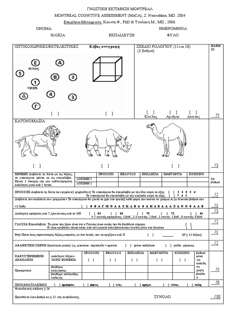 Moca Cognitive Assessmenttest Greek Pdf